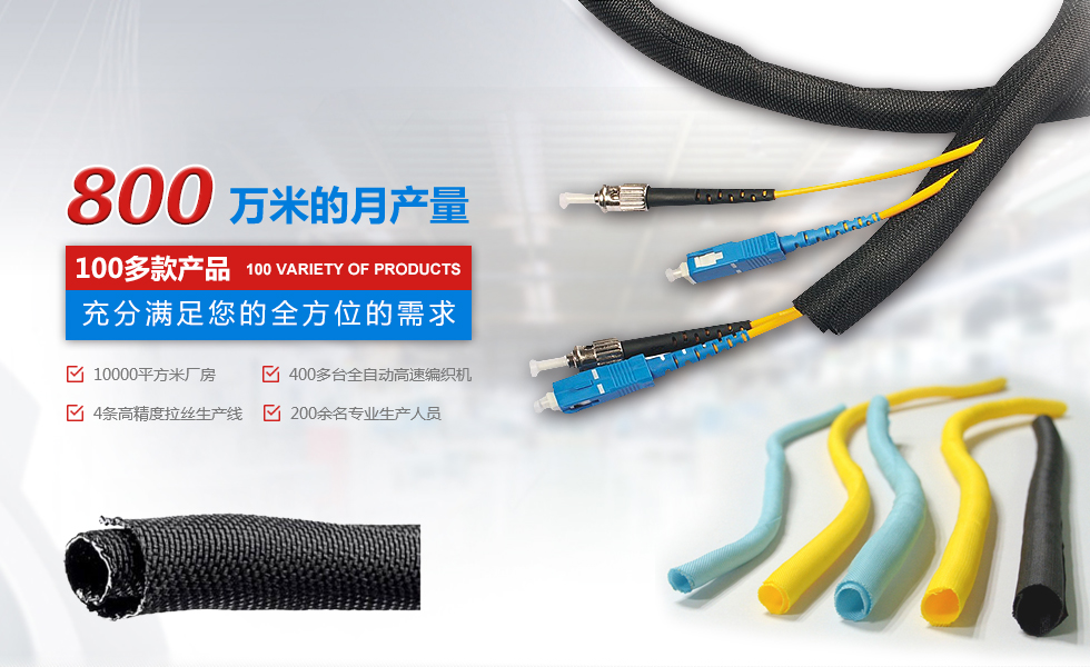 自主設(shè)計(jì)、研發(fā)、規(guī)模化大型生產(chǎn)企業(yè) 擁有廠房10000平米,400多臺(tái)全自動(dòng)。高速編織機(jī)四條高精度紡絲生產(chǎn)線,員工200余人,月產(chǎn)量800萬米,中國(guó)最大絕緣保護(hù)套管生產(chǎn)企業(yè)之一。
